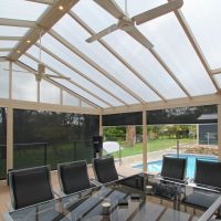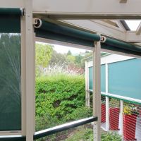 - High-strength outdoor blind fabric in more than 18 colours, or tinted or clear UV rated PVC